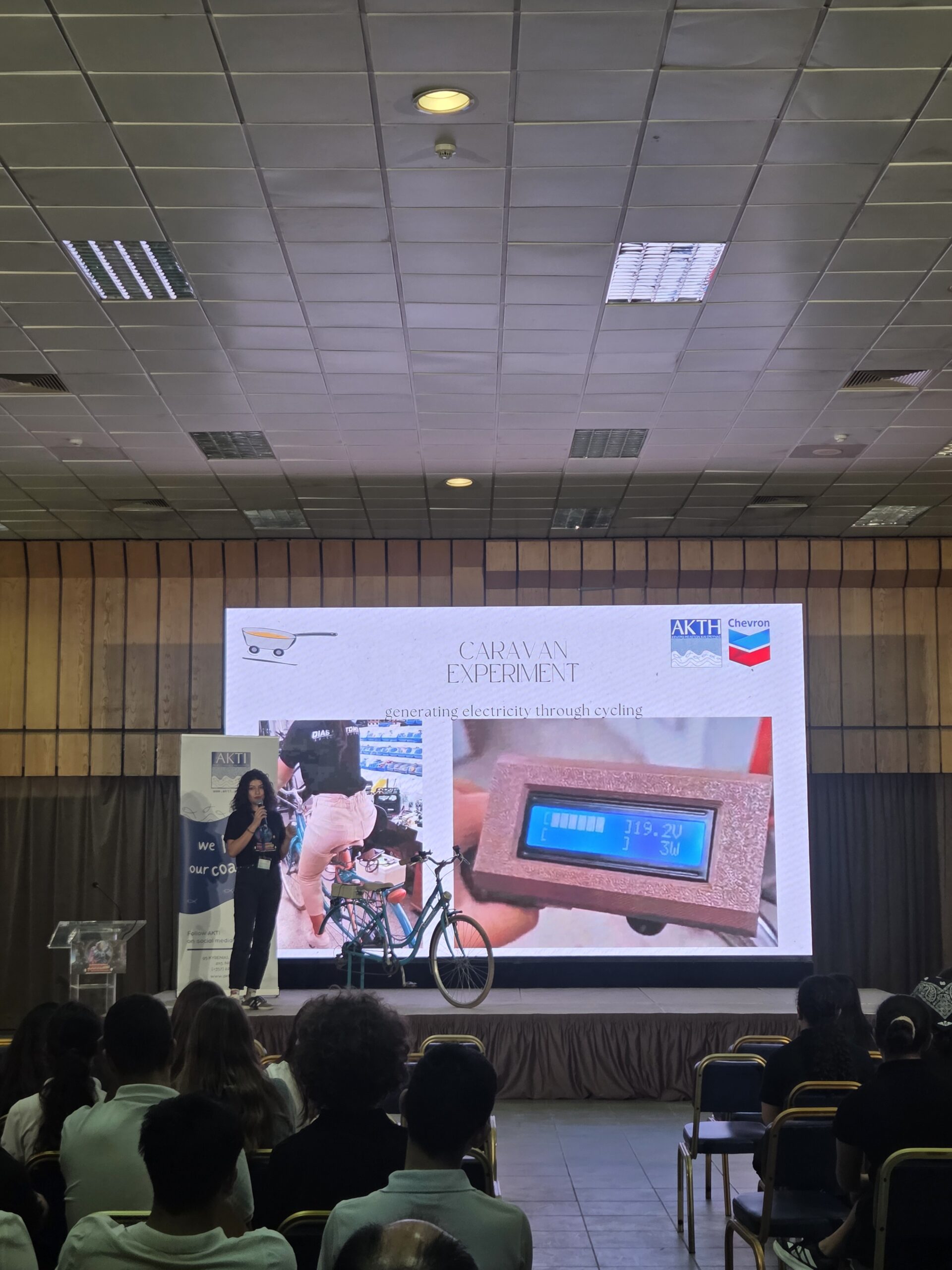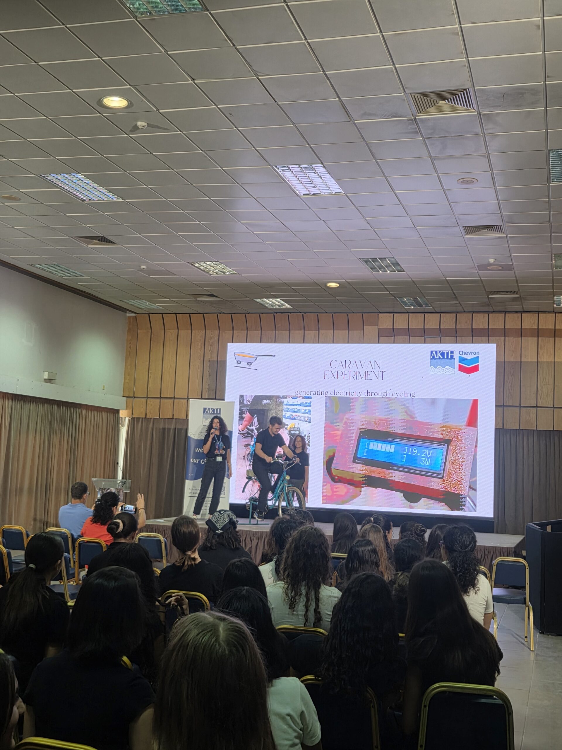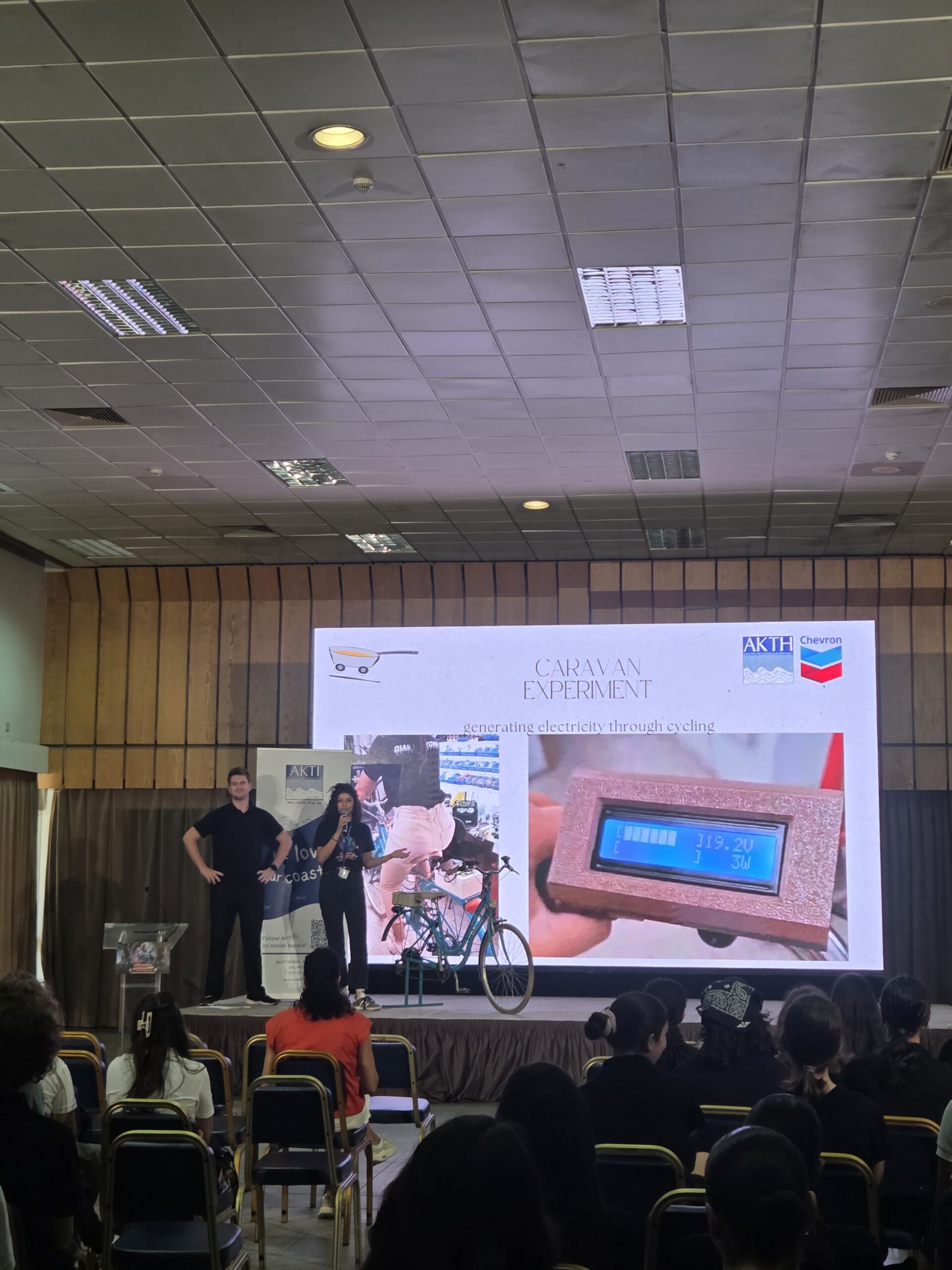 The day began with the presentation of the newest addition to our caravan, a bike transformed into a charging station. An exciting example of upcycling and innovation, it demonstrated how human energy from pedaling can be converted into electricity to power devices in real time.