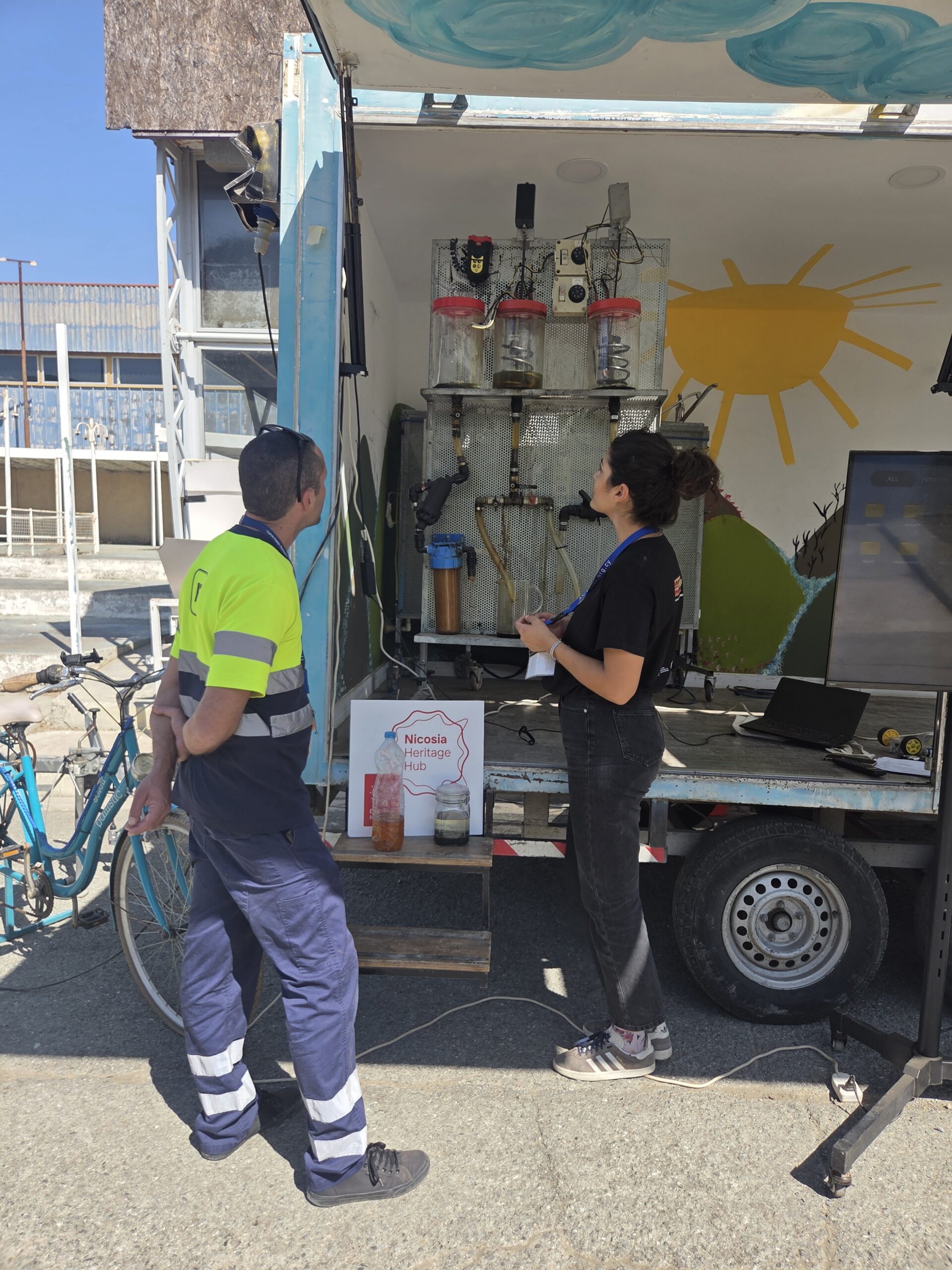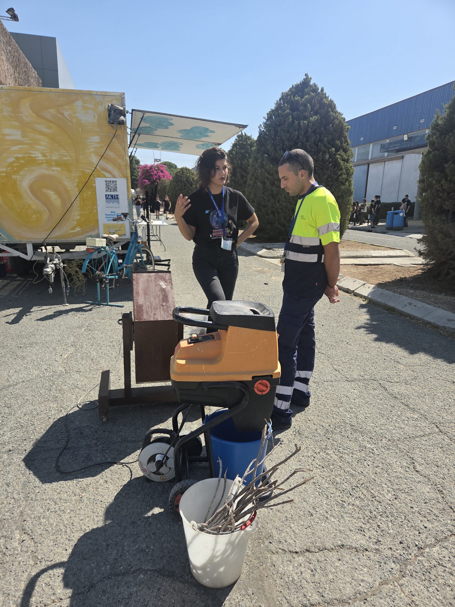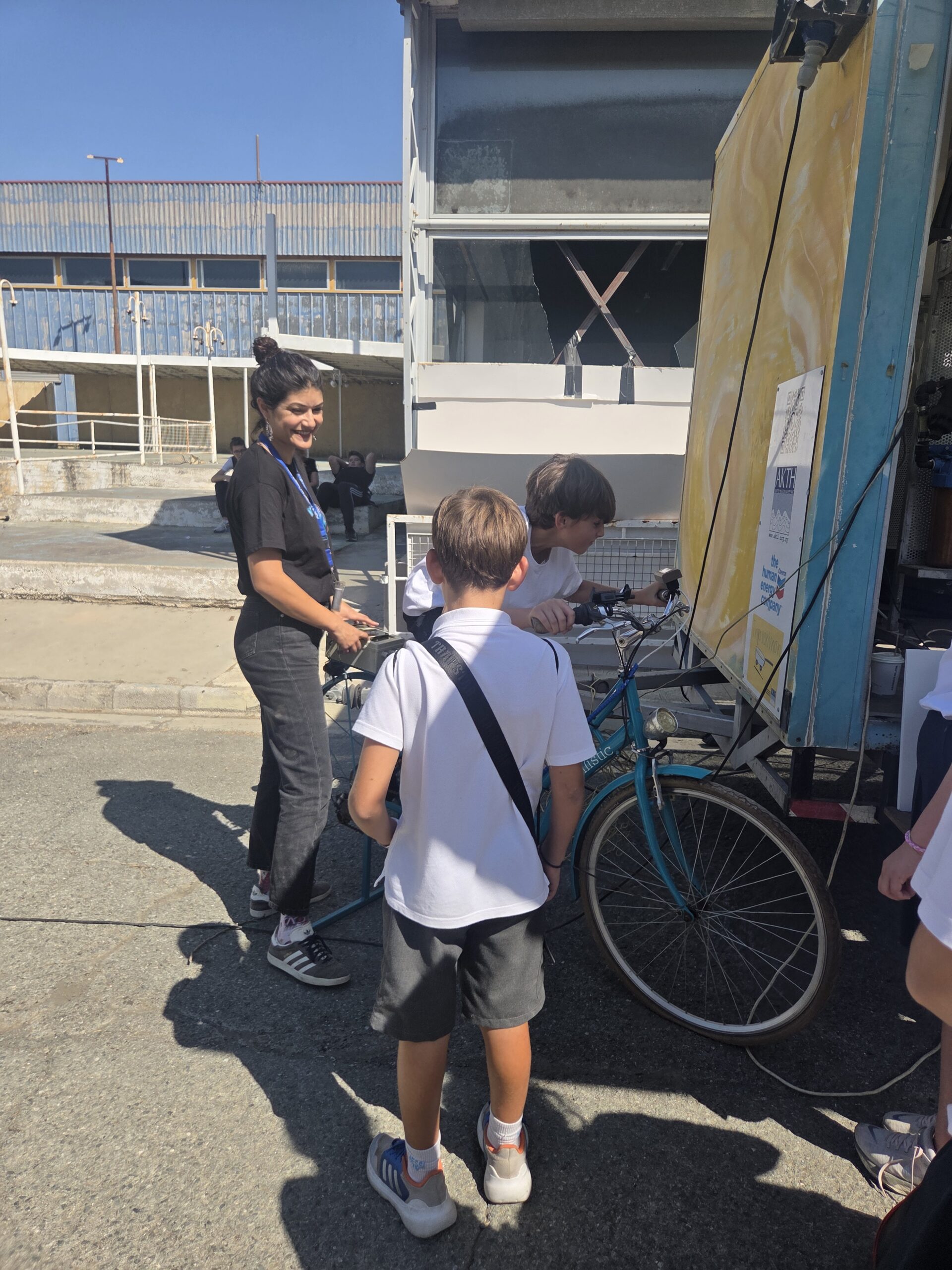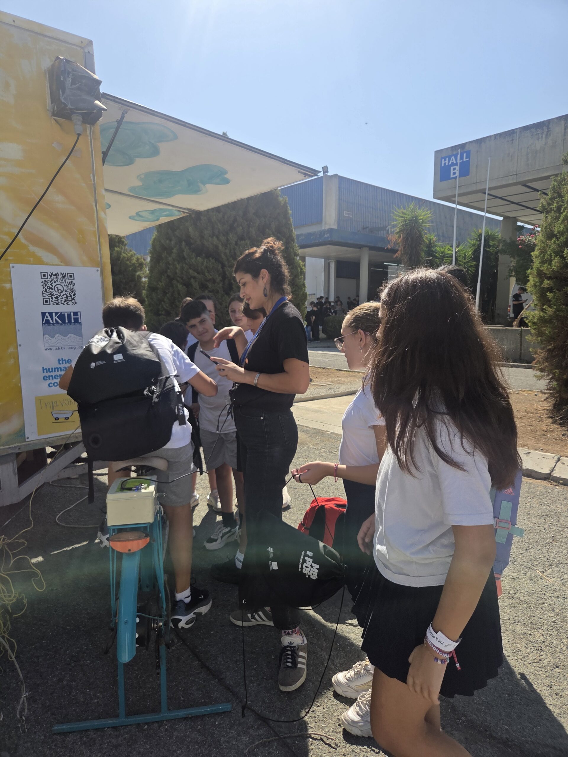 Η μέρα ξεκίνησε με την παρουσίαση της νεότερης προσθήκης στο καραβάνι, το ποδήλατο που μετατράπηκε σε σταθμό φόρτισης. Ένα συναρπαστικό παράδειγμα ανακύκλωσης και καινοτομίας, που δείχνει πως η ανθρώπινη ενέργεια από την ποδηλασία μπορεί να μετατραπεί σε ηλεκτρισμό για να τροφοδοτεί συσκευές σε πραγματικό χρόνο.