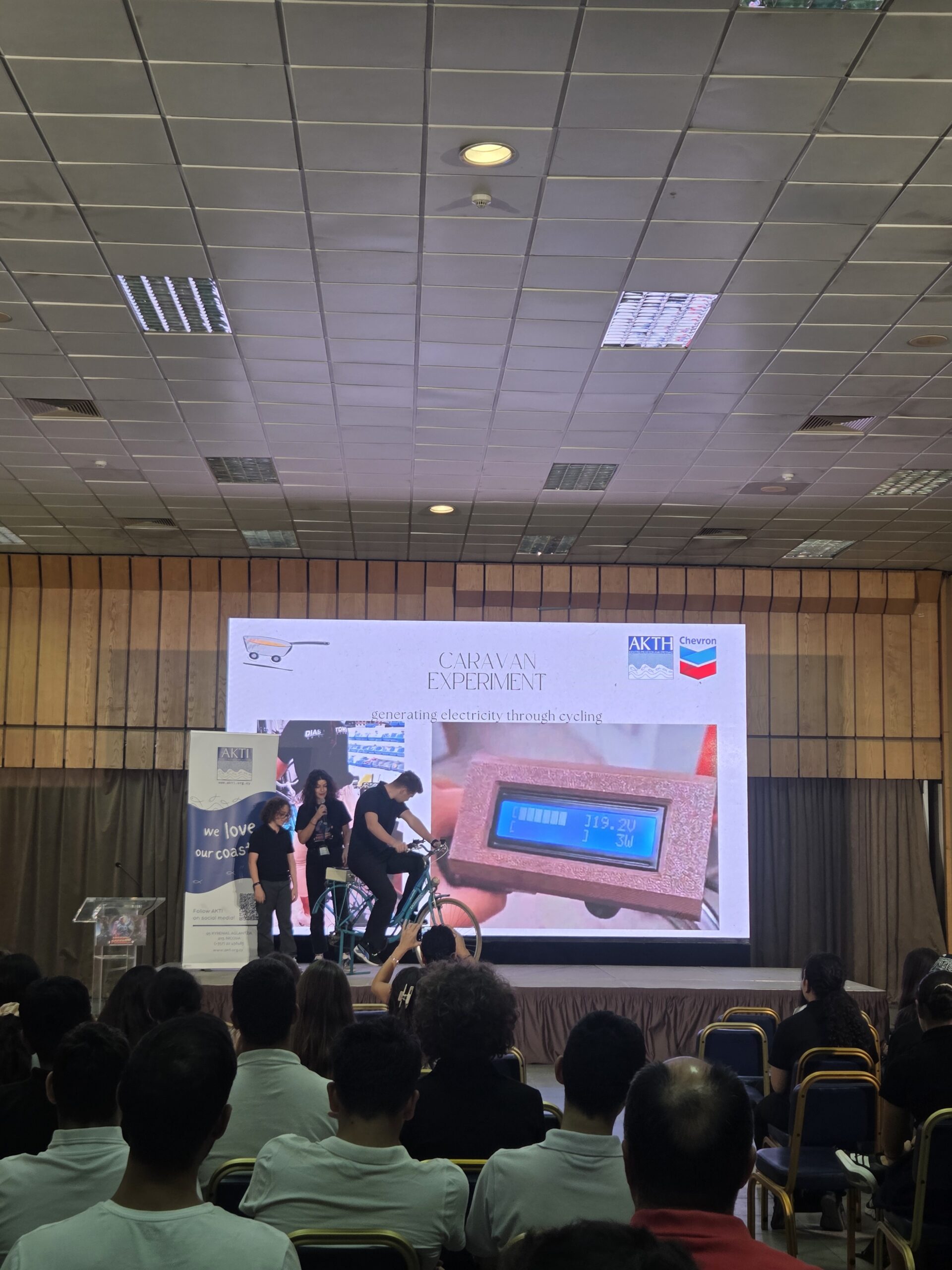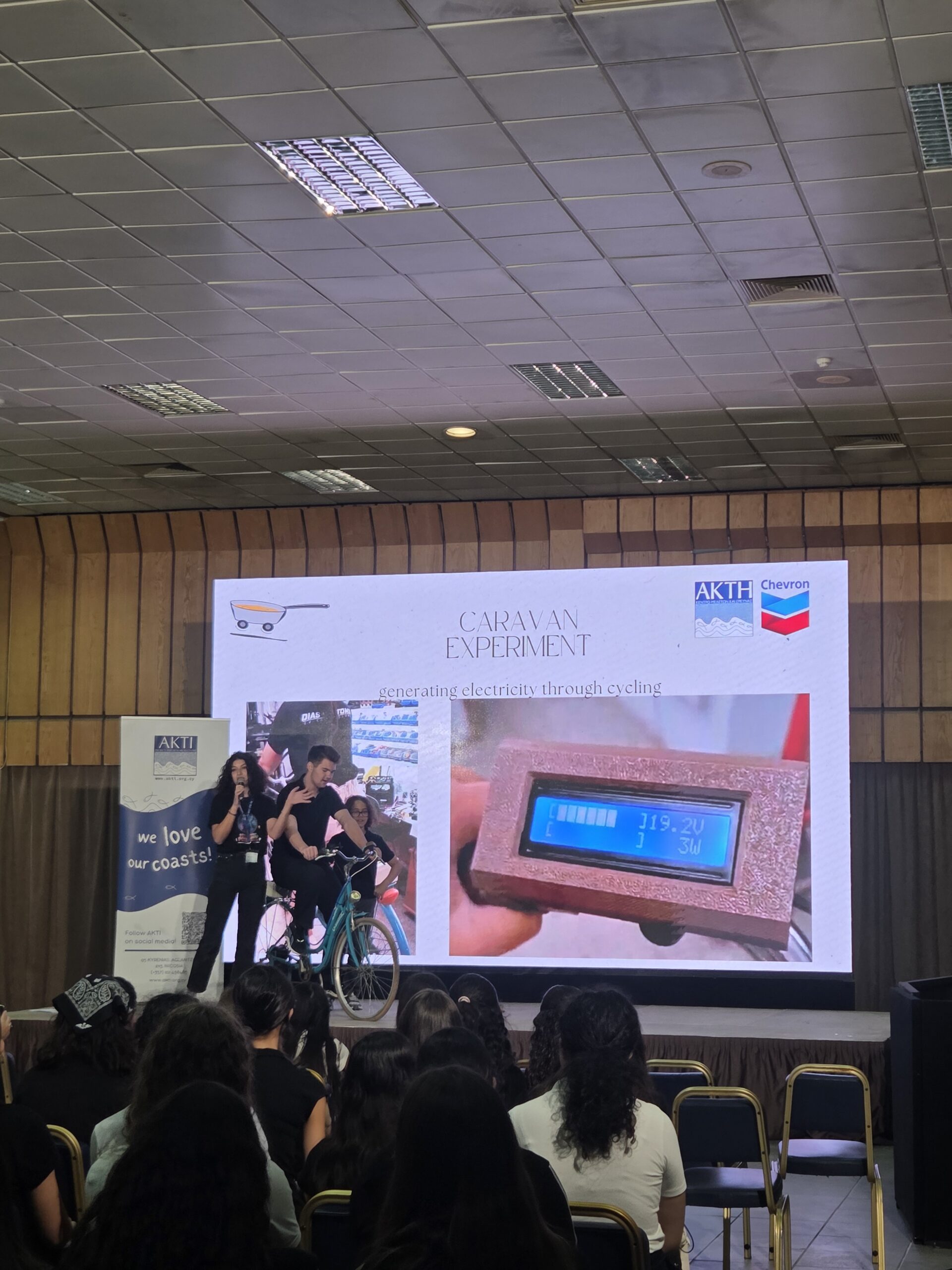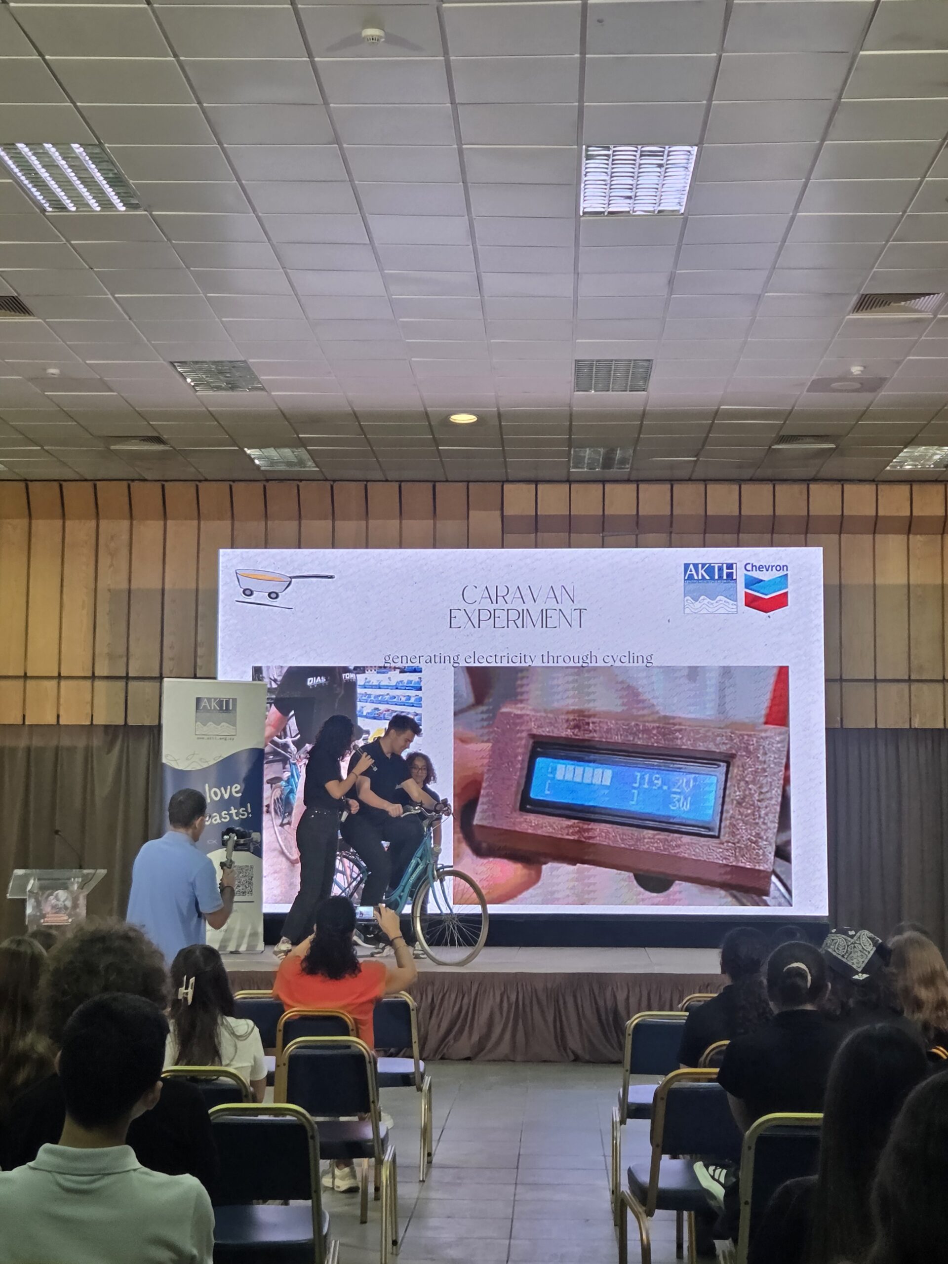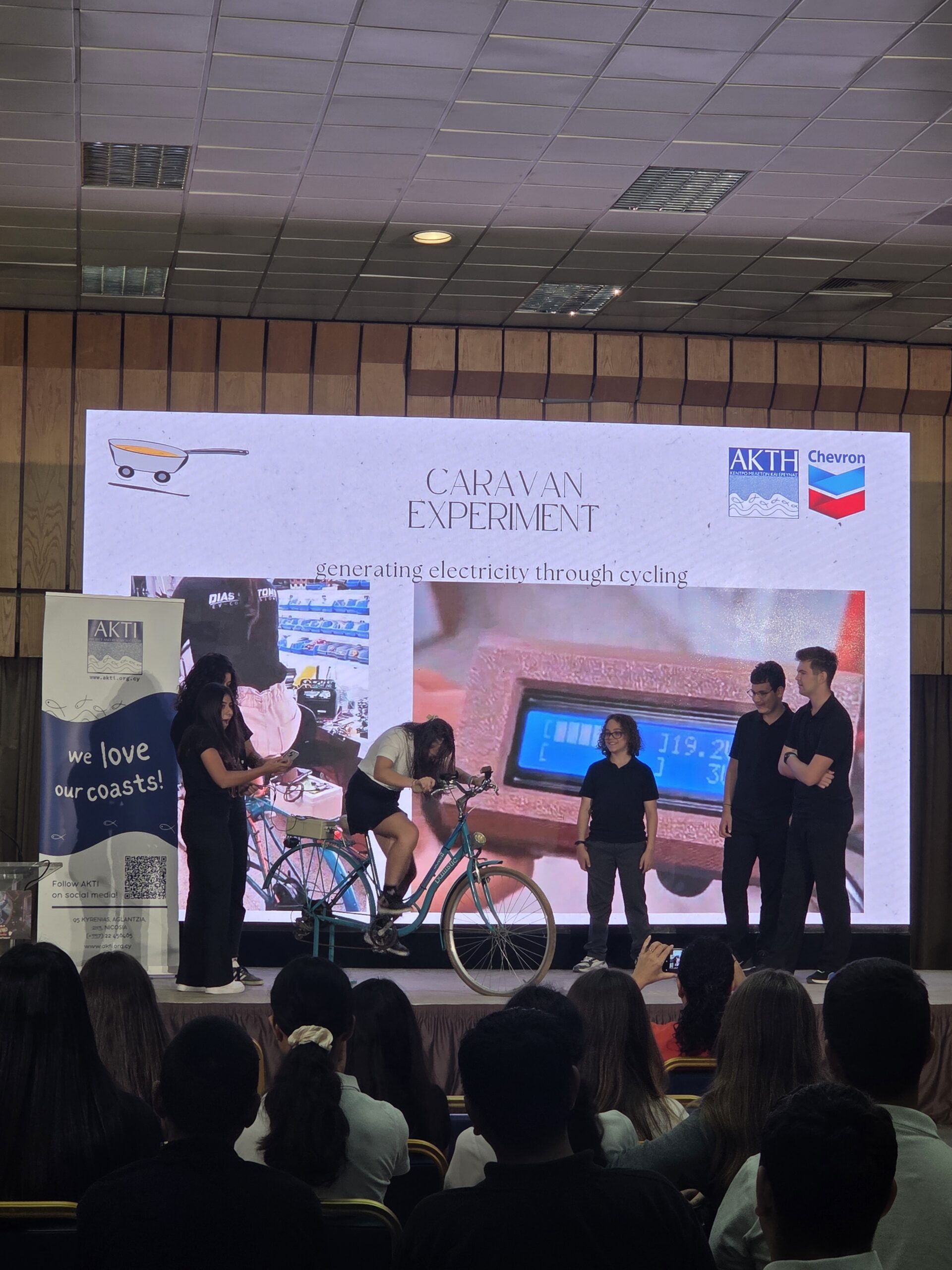 Η μέρα ξεκίνησε με την παρουσίαση της νεότερης προσθήκης στο καραβάνι, το ποδήλατο που μετατράπηκε σε σταθμό φόρτισης. Ένα συναρπαστικό παράδειγμα ανακύκλωσης και καινοτομίας, που δείχνει πως η ανθρώπινη ενέργεια από την ποδηλασία μπορεί να μετατραπεί σε ηλεκτρισμό για να τροφοδοτεί συσκευές σε πραγματικό χρόνο.