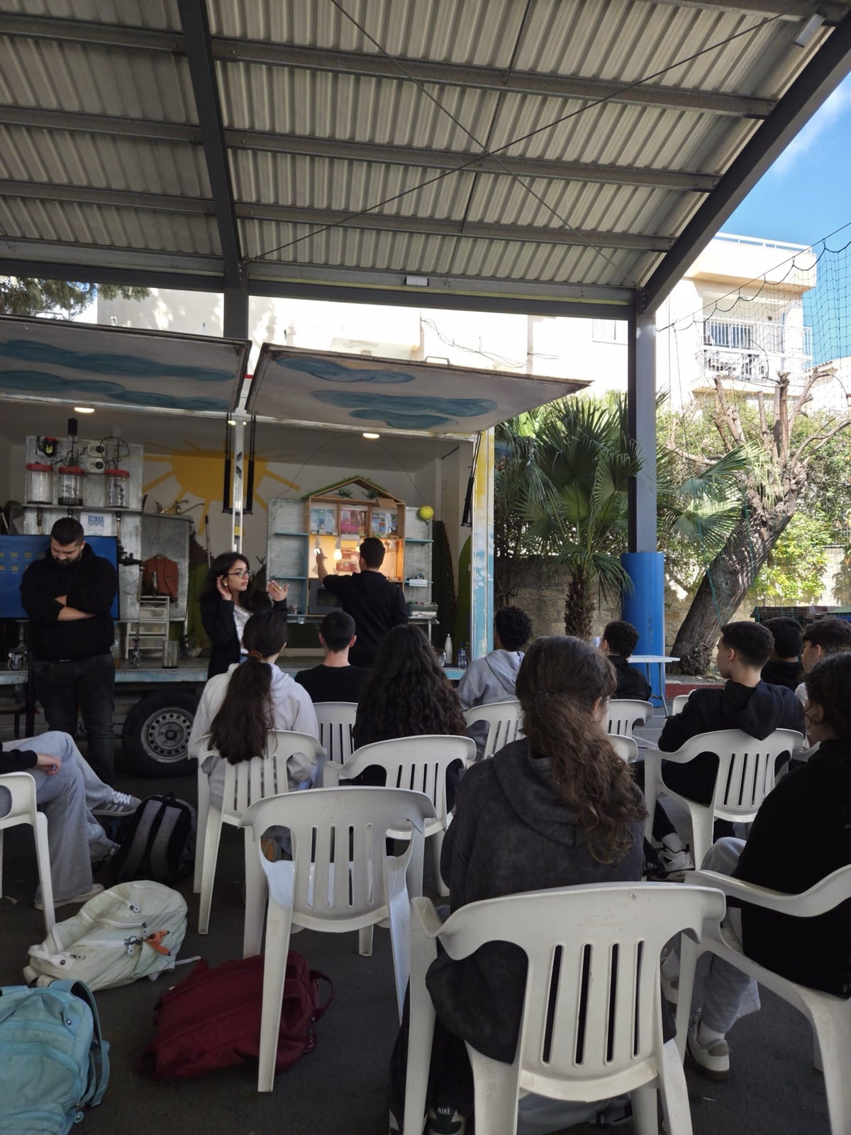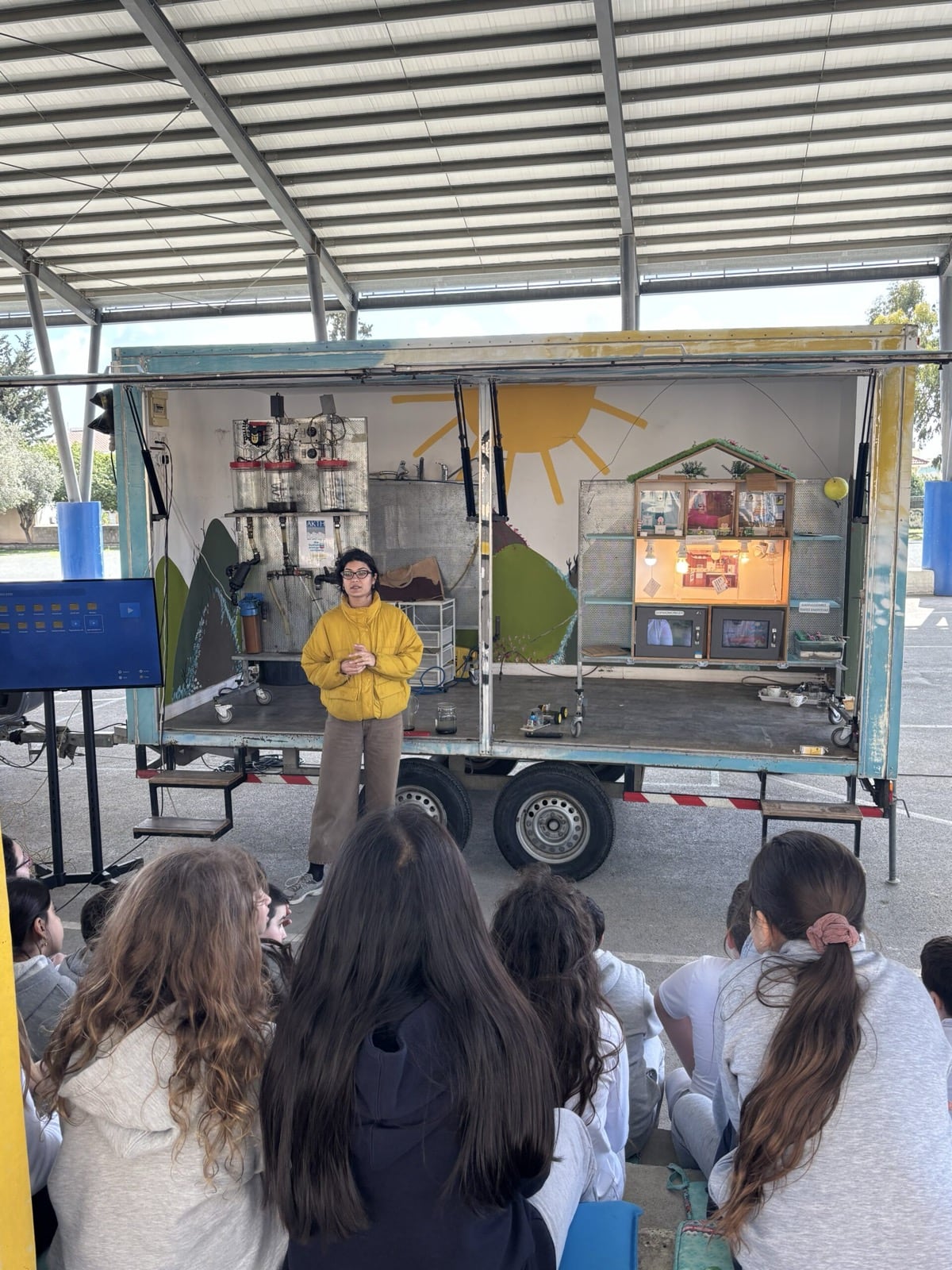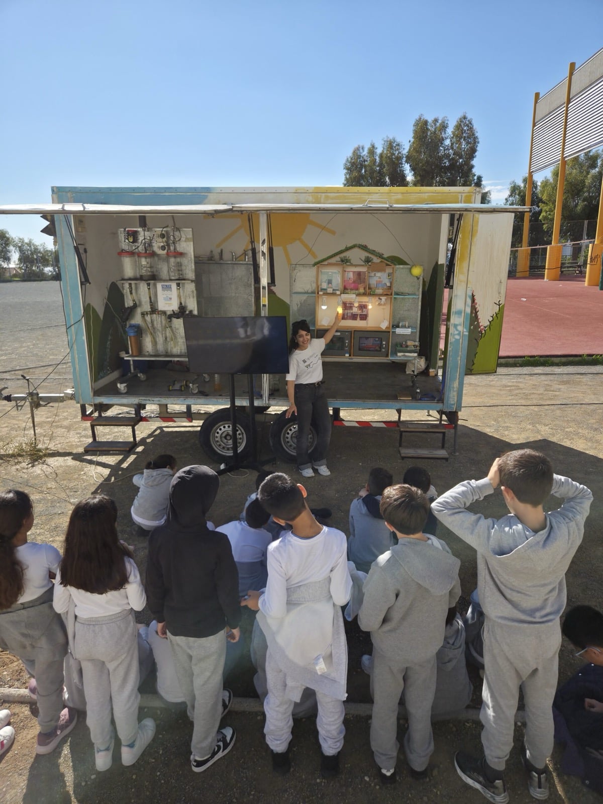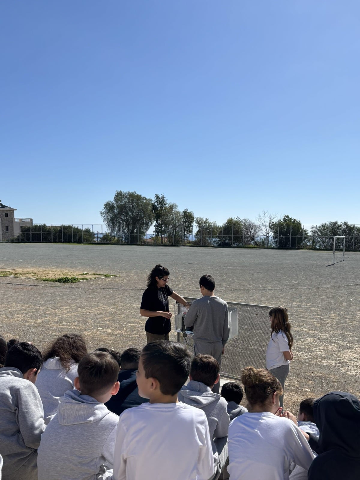 All the schools warmly welcomed the Tiganokinisi caravan. At Linopetra Gymnasium, however, the weather was not on our side, as the rain did not allow us to carry out the presentation outdoors. We therefore continued inside the classroom, where the children participated with the same interest and enthusiasm.