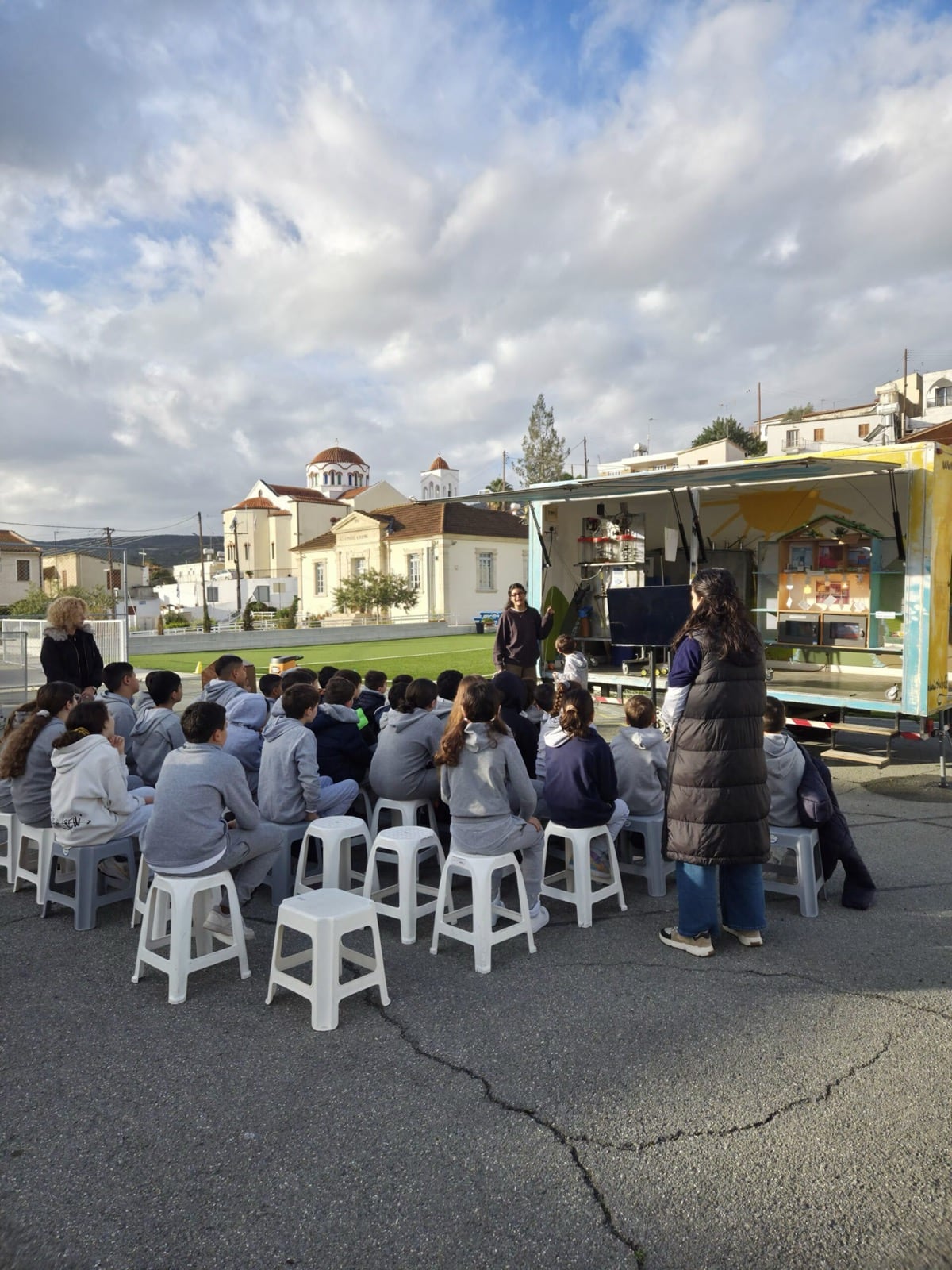 Tiganokinisi visited the Kofinou Primary School, the Agios Theodoros Primary School and Kindergarten, the Choirokoitia Primary School and the Zygi Primary School and Kindergarten.